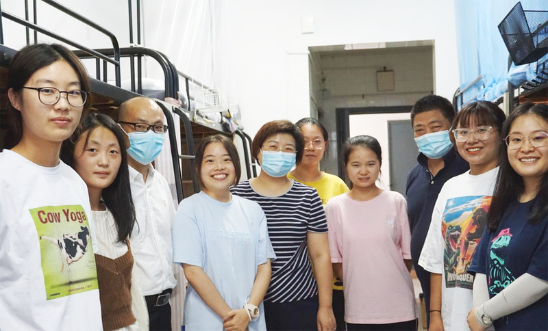 10月4日下午,永利总站ylzz55党委书记朱小娟、院长陆国君,党委副书记、副院长陈俊怀带领全体辅导员深入新生宿舍,亲切看望2021级新同学。