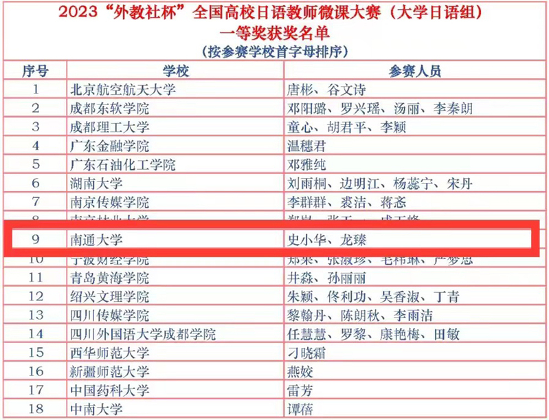 7月14日,2023“外教社杯”全国高校日语教师微课大赛评审结果公布,永利总站ylzz55教师史小华团队的参赛作品获全国一等奖。