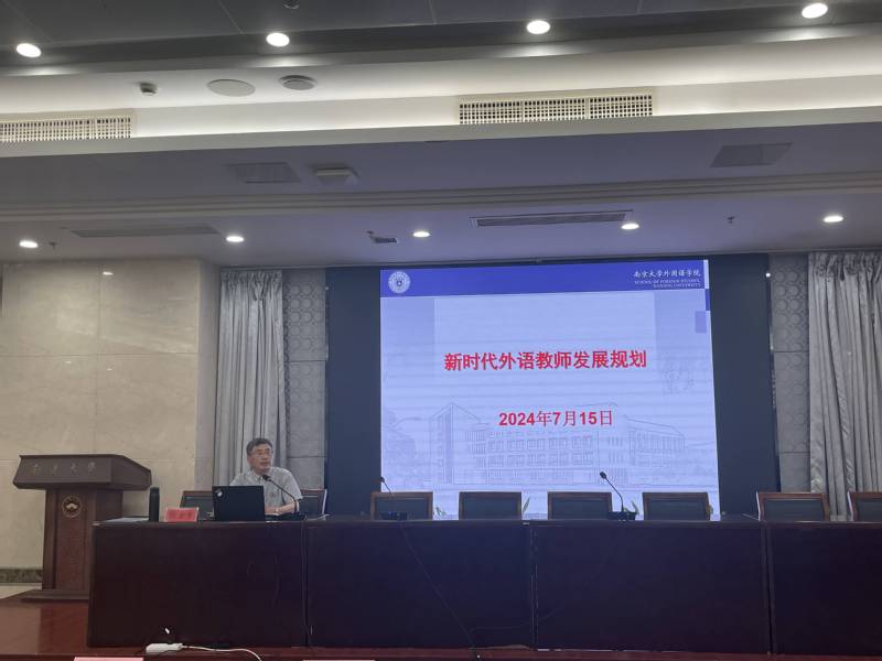 开班仪式后,徐锦芬教授以“基于文献阅读的学术论文选题挖掘”和“学术论文研究设计”为题给参训教师在研究选题挖掘和论文写作设计两个方面进行了指导。当日下午,长江学者特聘教授、南京大学杨金才教授以“新时代外语教师发展规划”为题作专题指导讲座。