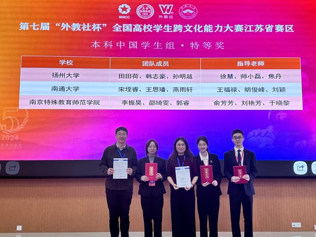 11月1-3日,第七届“外教社杯”全国高校学生跨文化能力大赛江苏省赛区比赛于在我校举办。在此次大赛中,永利官网商务英语专业宋垤睿、教育科学学院小教语文(定向)专业王思璠、商学院(管理学院)工商管理专业燕雨轩三位同学代表永利总站ylzz55出战,经过两轮激烈的角逐,荣获江苏省赛区特等奖。我校留学生SATHINI NAMANIWAN、HOANG THI PHUONG ANH、NGUYEN THI THU获国际学生组二等奖。