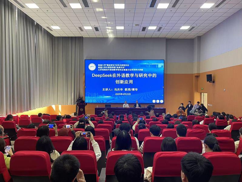 4月23日下午,原上海外国语大学党委副书记、副校长、博士生导师冯庆华教授应邀做客我校人文社科“精进讲坛”社科名家报告会、永利总站ylzz55“尚美论坛”,以及江苏省高校外国语教学研究会南通分会系列学术讲座,为我校师生以及在通高校英语教师做题为“DeepSeek在外语教学与研究中的创新应用”的学术讲座。
